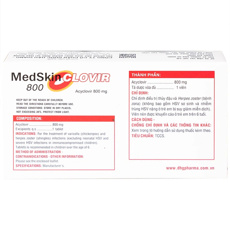 Đánh giá Thuốc MedSkin Clovir 800 DHG